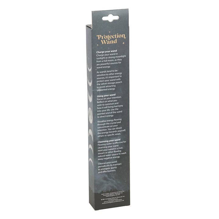 Protégez et ancrez votre énergie avec cette baguette magique de protection. Complétée par un véritable cristal d'obsidienne noire pour absorber l'énergie négative et favoriser la clarté mentale, elle présente un magnifique design de baguette magique, parfait pour le travail énergétique et la définition d'intentions. Emballée avec une pochette de rangement dans une boîte prête à offrir. Conçue par Something Different Wholesale et faisant partie de la gamme Wands and Witchcraft de papeterie et accessoires magiques.