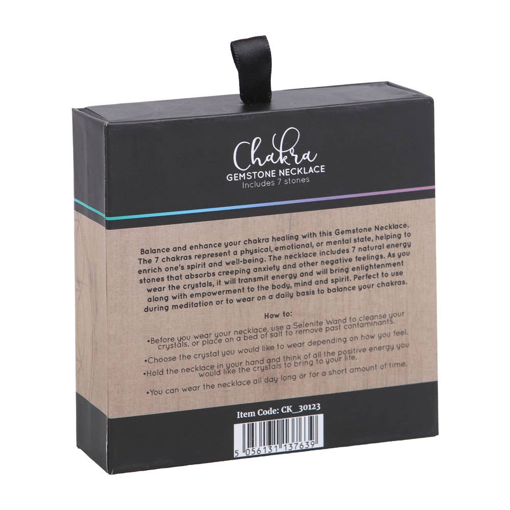 Ce kit de collier de guérison des chakras comprend 7 pierres précieuses tombées et un pendentif en forme de cage métallique argenté, présenté dans un coffret cadeau coulissant. Il suffit de choisir le cristal approprié pour la journée et de le placer à l'intérieur du porte-pendentif en métal pour atténuer les sentiments négatifs et favoriser le bien-être intérieur et extérieur. Les pierres tombales incluent du quartz transparent (couronne), de l'améthyste (troisième œil), du lapis-lazuli (gorge), de l'aventurine verte (cœur), du jade jaune (plexus solaire), de la cornaline (sacral) et de l'hématite (racine). Conçu par Something Different Wholesale et fait partie de la gamme de cadeaux de guérison par les cristaux Seven Chakras.