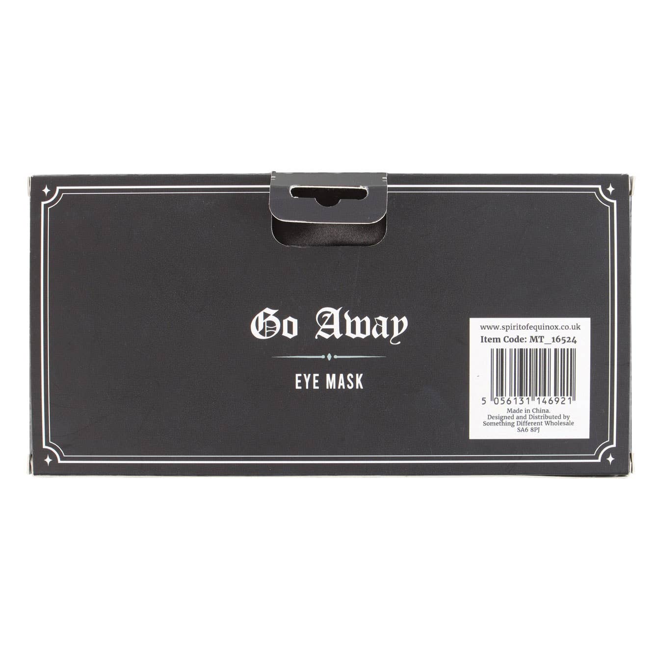Appel à toutes les personnes fatiguées, aux amateurs de siestes et aux jet-setters ! Dites bonjour au compagnon de sommeil idéal conçu par Something Different Wholesale. Notre masque de sommeil en satin noir, qui fait fièrement partie de la gamme Dark Matter de cadeaux et de décorations alternatifs, est le choix idéal pour un sommeil ininterrompu. Avec les mots « Go Away » imprimés de manière audacieuse dans une police gothique sur le devant, le masque dégage une sensation luxueuse et envoie un message clair au monde entier : celui qui le porte a besoin d'un repos tranquille. Le masque de sommeil est emballé dans une élégante boîte de présentation.